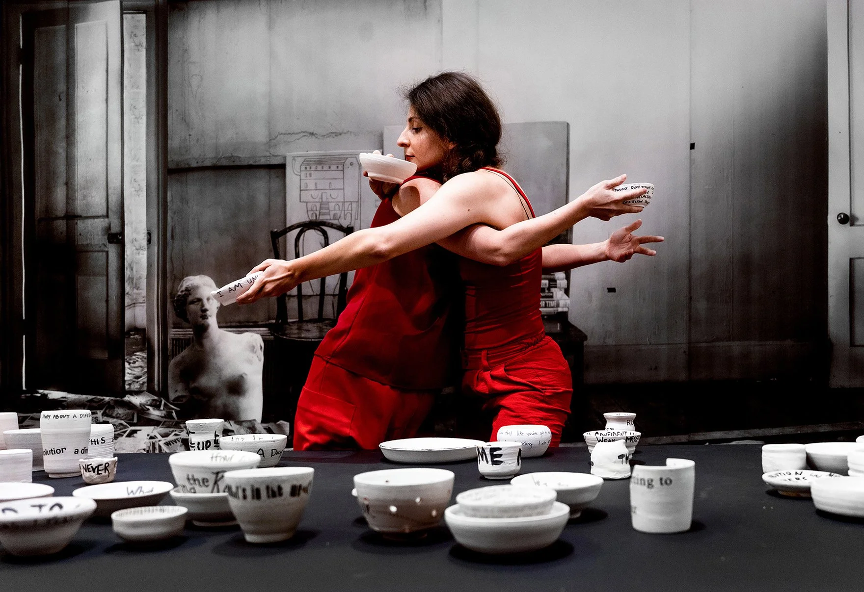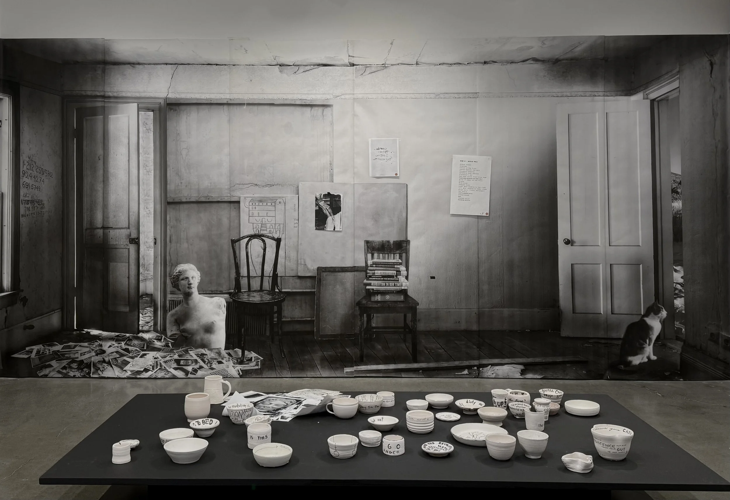 Revolution is a Dinner Party reclaims the domestic sphere as a vital site of political resistance and social inquiry. By centering the table as a stage for both intimacy and diplomacy, this project bridges the personal and the political through site-specific installations and community-engaged programming. Drawing on the contrasting legacies of the mythological Circe and the historical Eleanor Roosevelt, the work explores the cultural intersections of a Greek-born identity within an American context. Through a combination of salvaged ceramics, archival fragments, and participatory sessions, the exhibition invites the public to consider how everyday rituals—acts of hosting, dining, and gathering—can serve as profound catalysts for societal transformation.